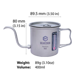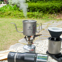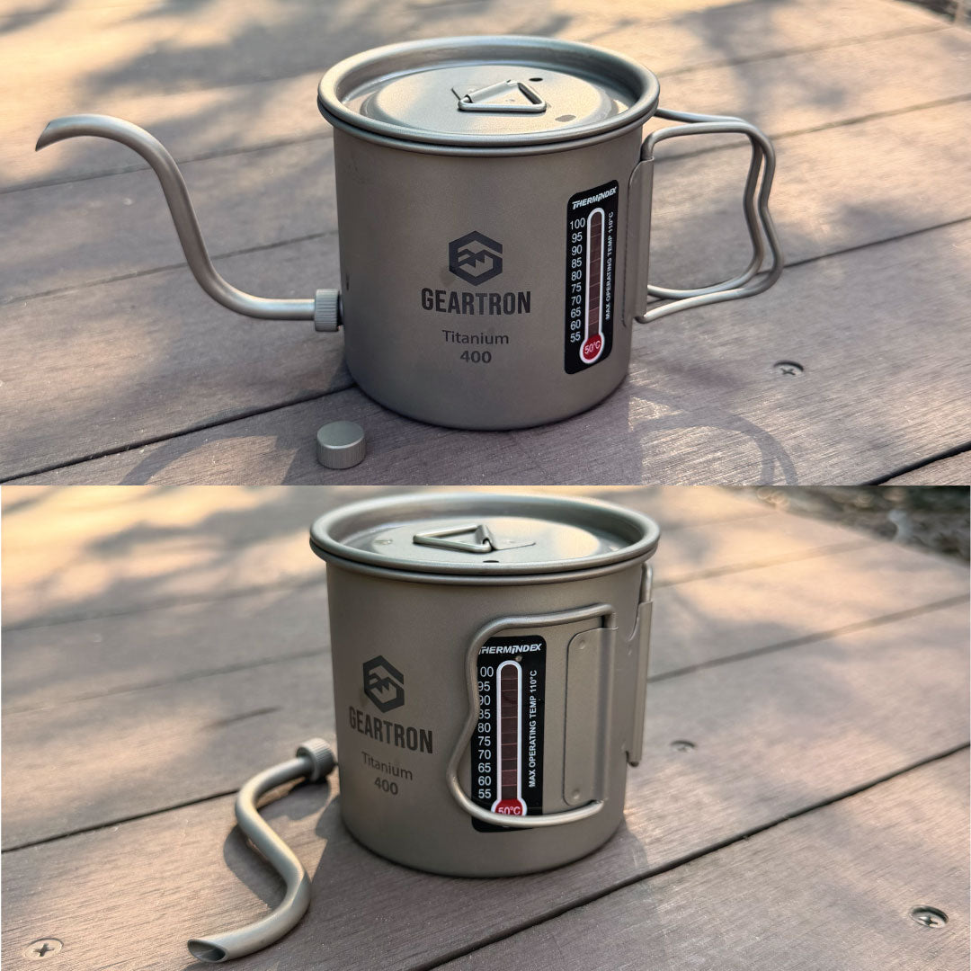 티타늄 소재 로 제작된 스마트 티타늄 커피포트는 커피 맛이나 얼룩이 남지 않고 세척이 간편합니다. 소형 휴대용 가스통 위에 바로 올려 사용할 수 있으며, 뚜껑에는 끓는 상태를 확인할 수 있는 편리한 통풍구가 있습니다.