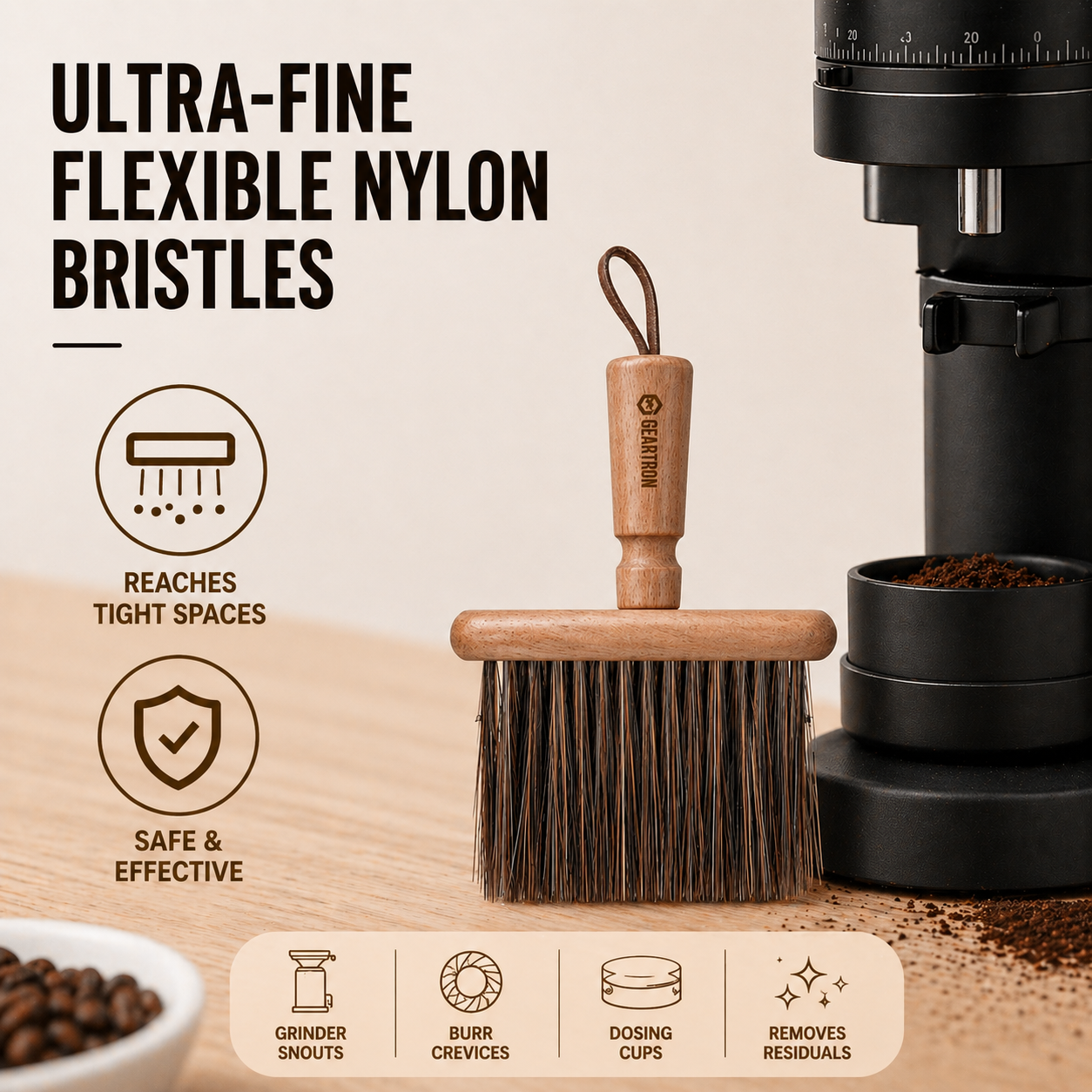 GEARTRON Dusting Brush - A master-crafted tool that brings both professional utility and artisanal style to your home coffee bar.